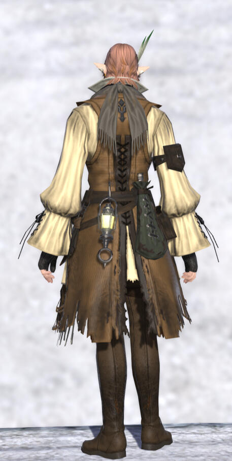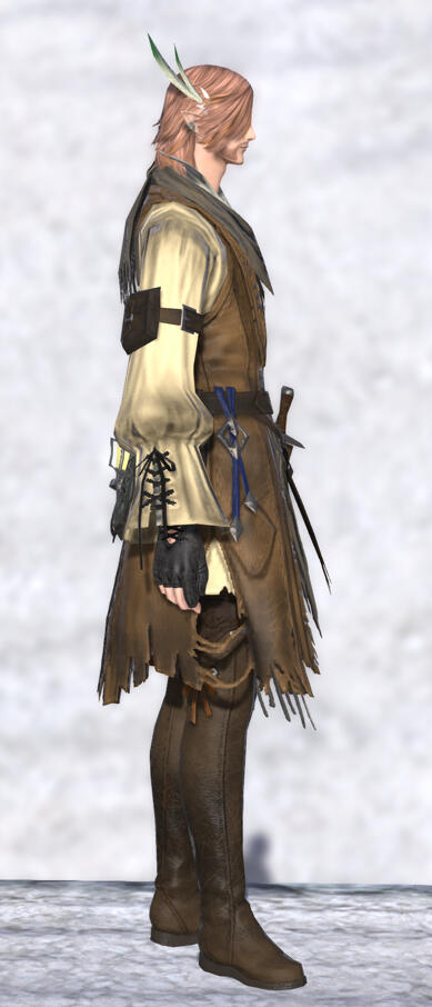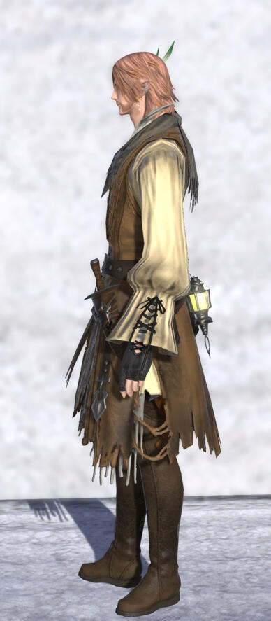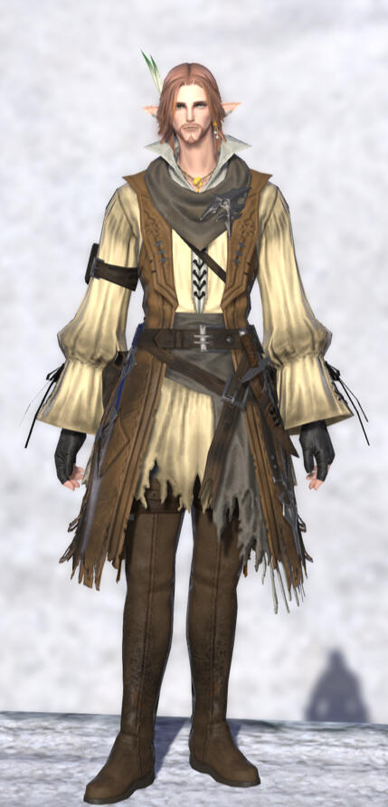 The tweens established an unofficial fanclub and still post fliers and share leaflets with news and pictures of him around town. The Fishers' Guild in Limsa also heard about him, and established an official club, with proceeds from merchandise sales helping to pay for his equipment.The two clubs loathe each other. Sam does not know about either one.He recently hung up his sandals and now wanders across Eorzea with his chocobo, Syldra, and Streudel.Sam is haunted by the idea he might be a heretic. Something he does not understand has been calling him since the Calamity, and he hopes in his wanderings to learn what it might be.