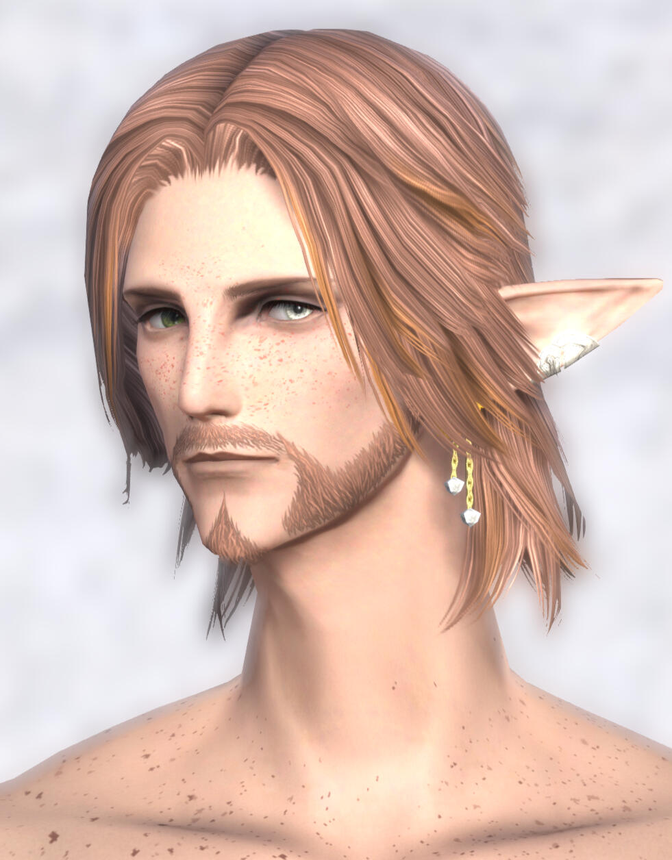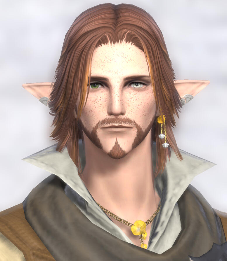 ears large!hair: ginger, shaggy, untidy. style varies, but currently 'the urianger.' during shb, white highlights.skin: freckles! all over, lots of them. some body hair.general: sam is beautiful like a tween heartthrob, something which he is not particularly aware of.
