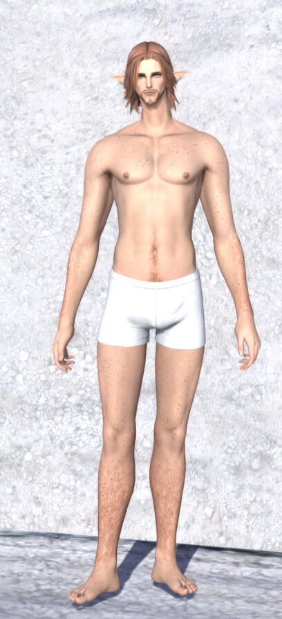 build: lean; whipcord muscle; strong arms and shoulders. 6'6" (198cm), unremarkable height for an elezen.